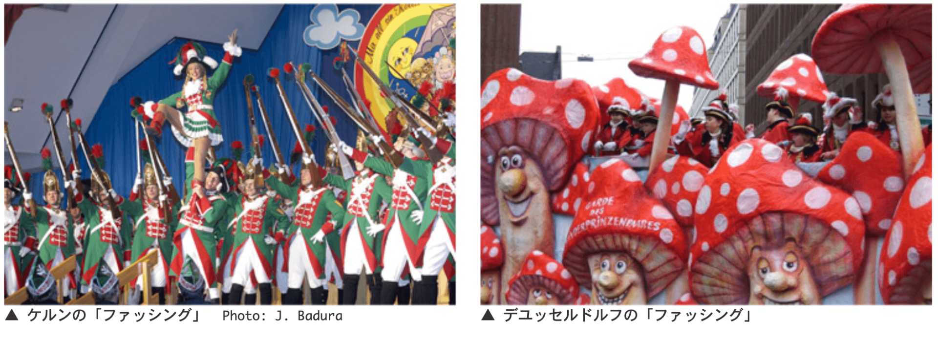 聞き慣れない言葉ですが、日本では『謝肉祭』、ライン河畔では『カーニバル』……と言えばもうおわかりですね。そう、リオのカーニバルや、ベニスのカルナバーレでもお馴染みの、人々が華やかな衣装を身に着け仮装、歌い踊りながらパレードをして大騒ぎする大イベントです。ミュンヘンやケルンなどの南ドイツ地方では、これを『ファッシング』と呼んでいます。